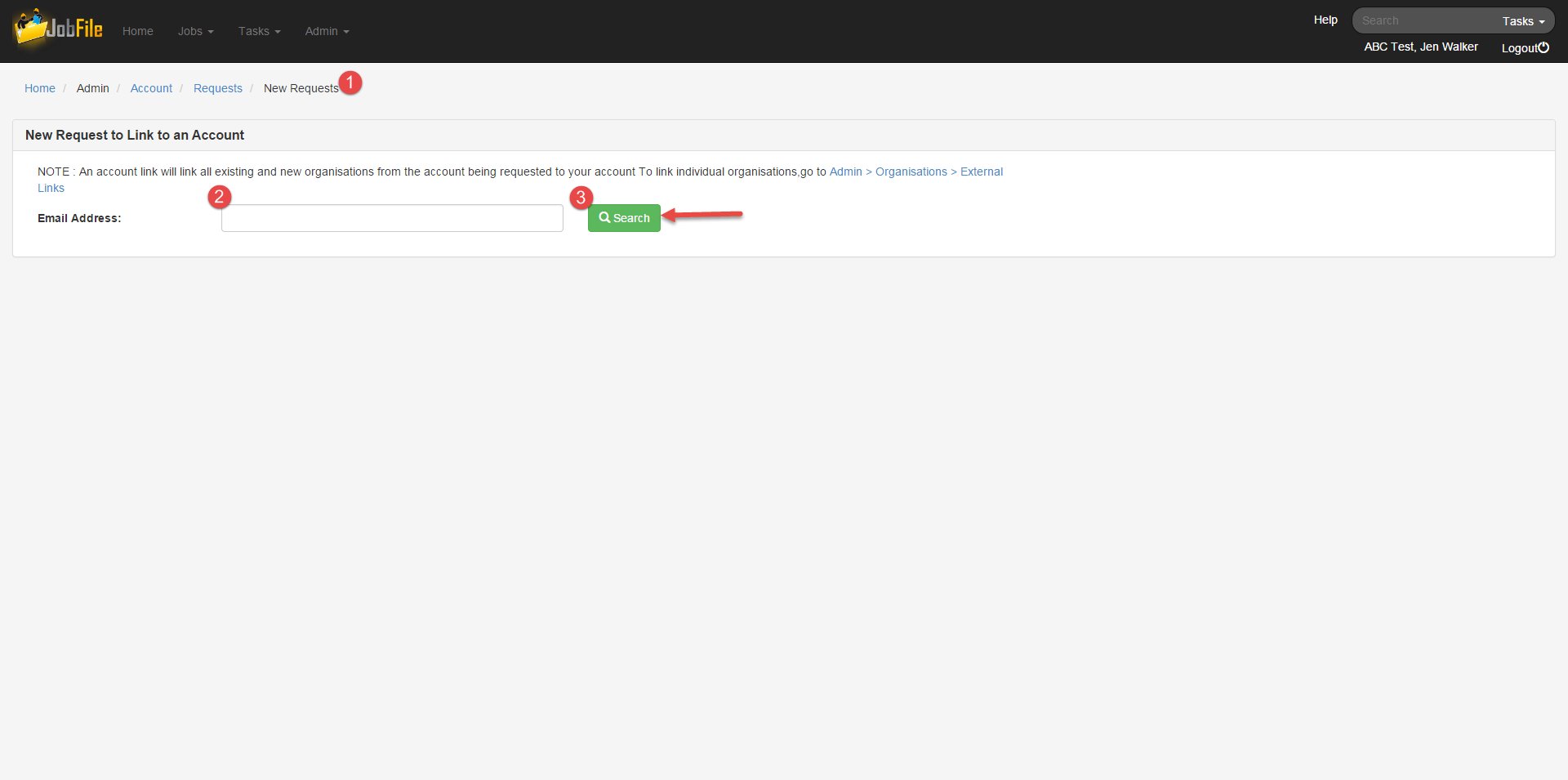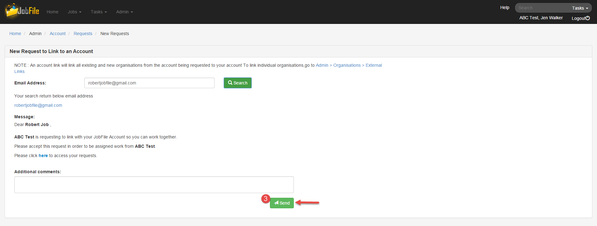 - In the new request page enter the email address of the account you want to link to