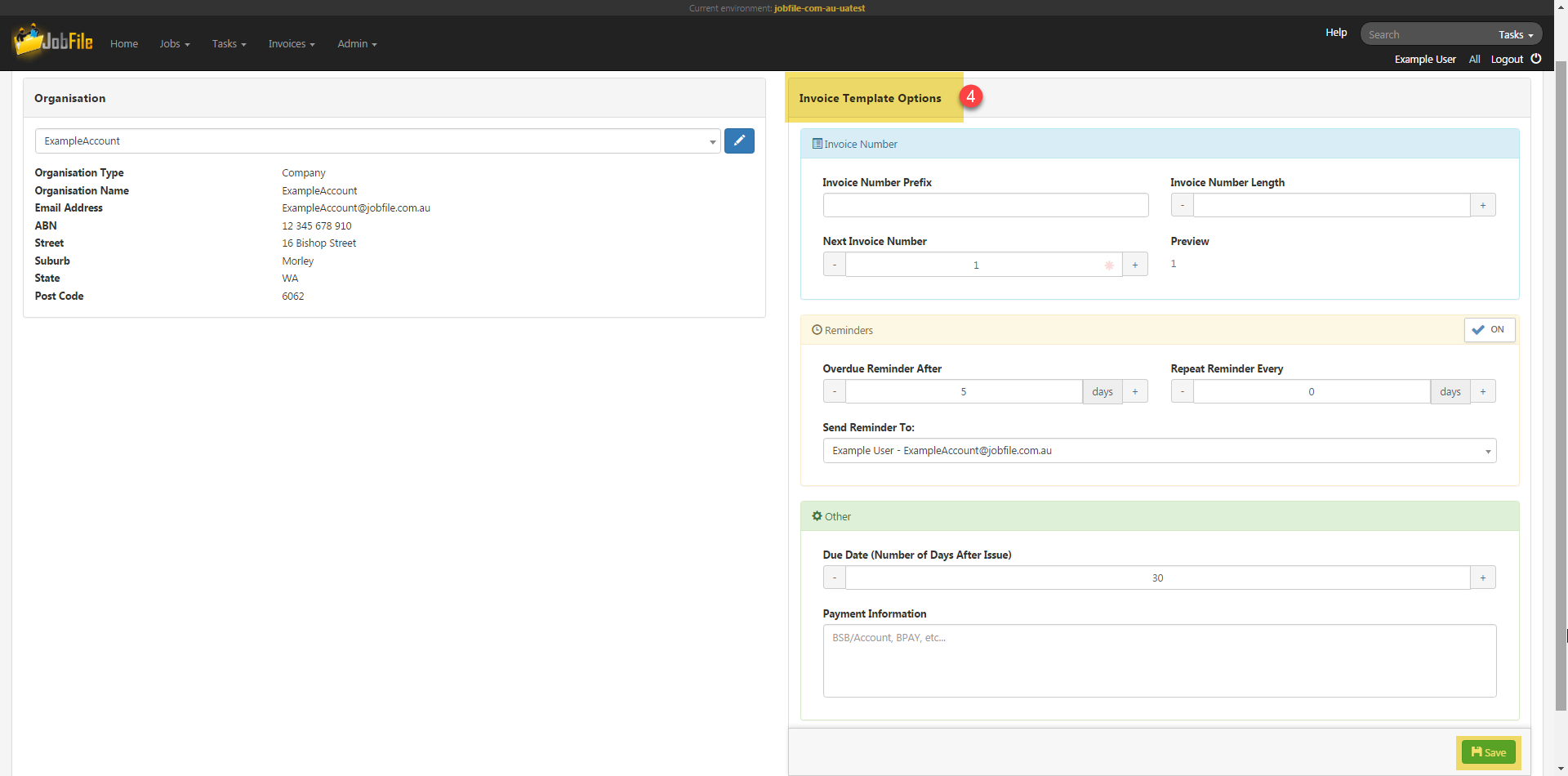 After doing this you will need to return to the invoice settings page. - Once you have selected the organisation you can modify the invoice template options on the right hand side of the page.