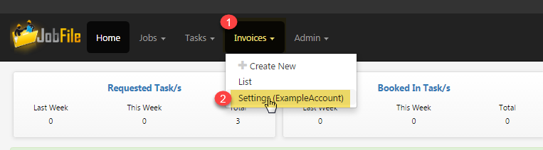 - Click on 'Invoices' > 'Settings'