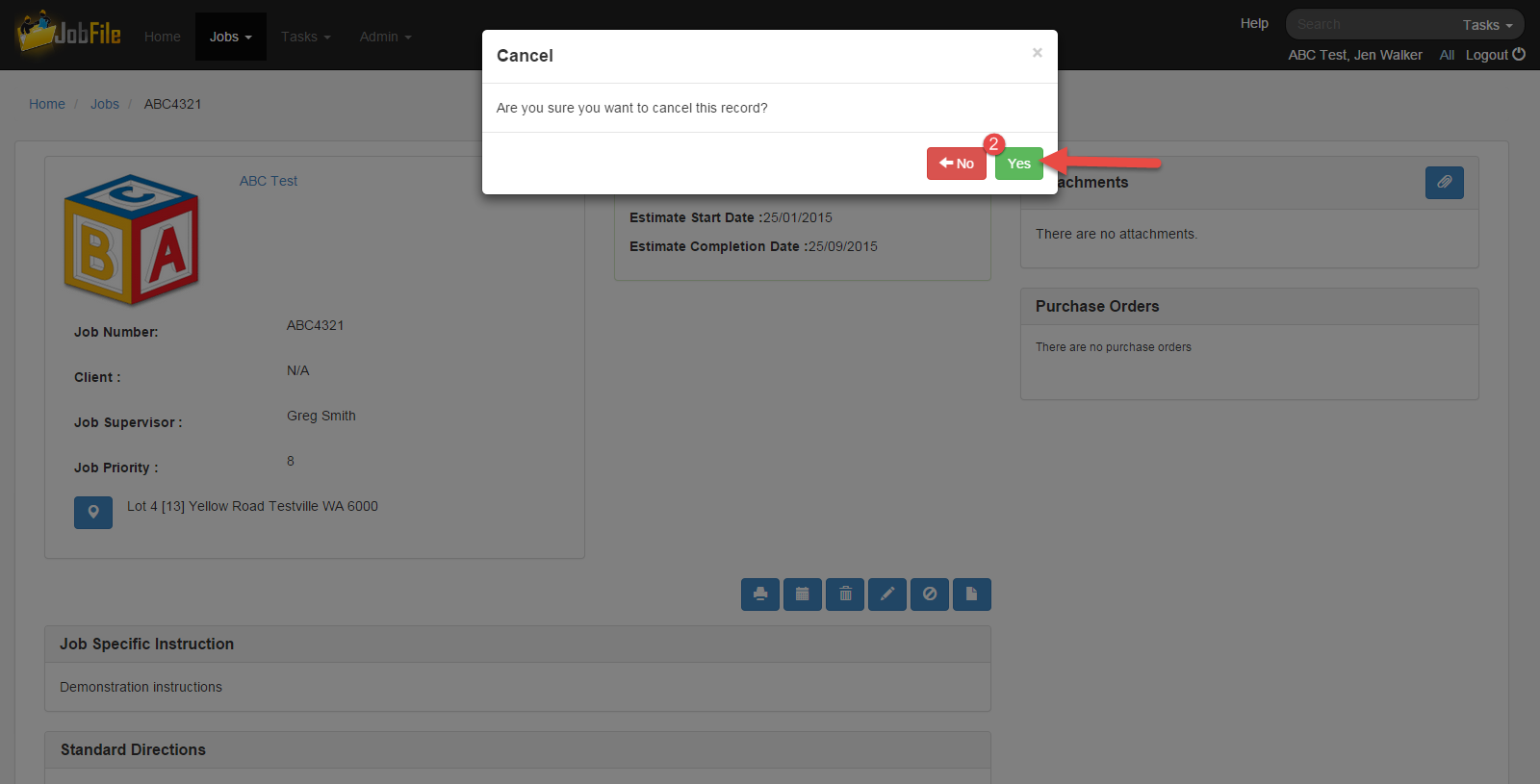 - In the popup window click 'Yes'The job will have the status cancelled.